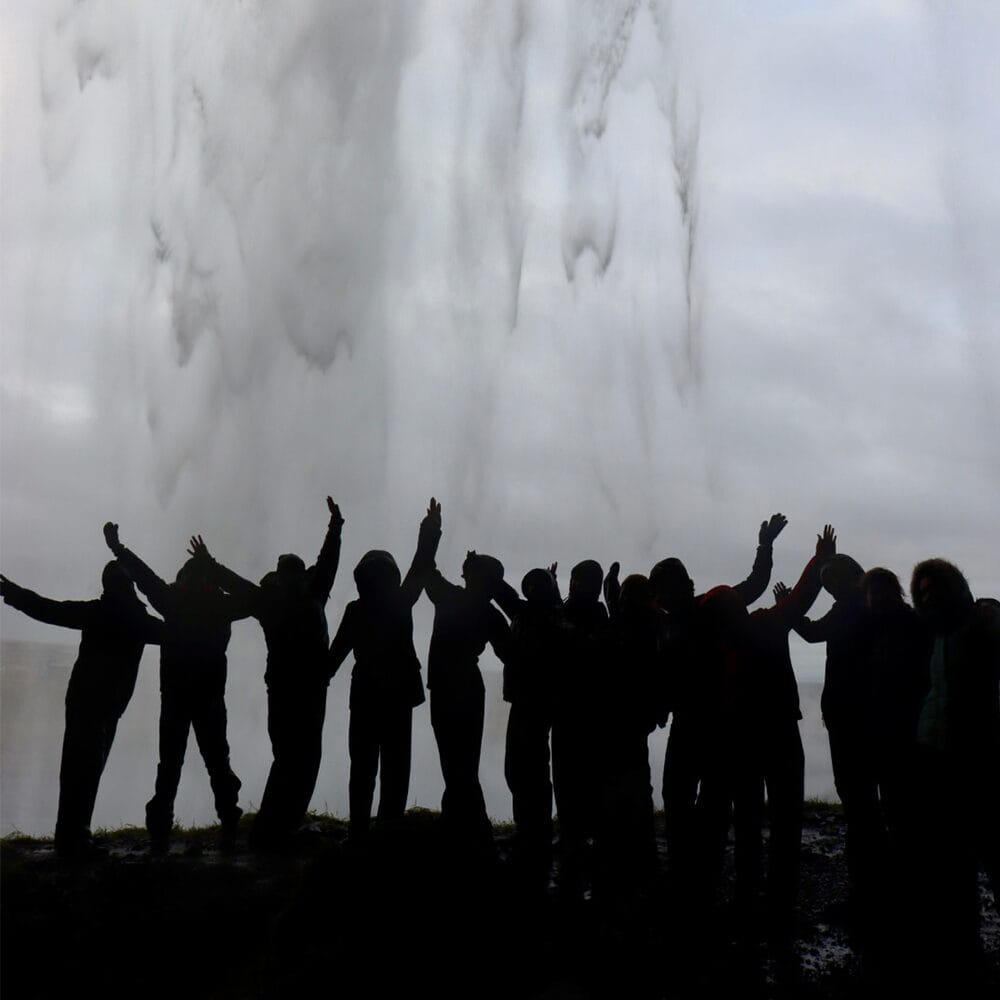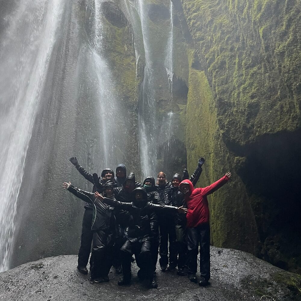 On day two, we visited the Lava Centre to learn about Iceland’s volcanic activity. We then saw Skógafoss waterfall and walked along Reynisfjara’s black sand beach, with its basalt columns and sea stacks. At Sólheimajökull glacier, students observed glacial features, and later we walked behind Seljalandsfoss waterfall.