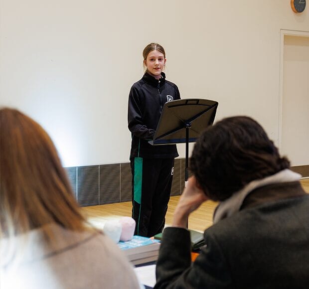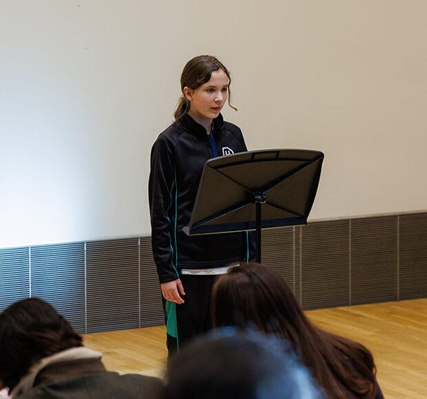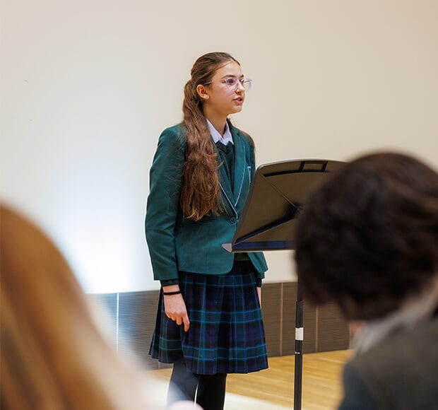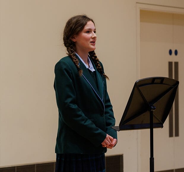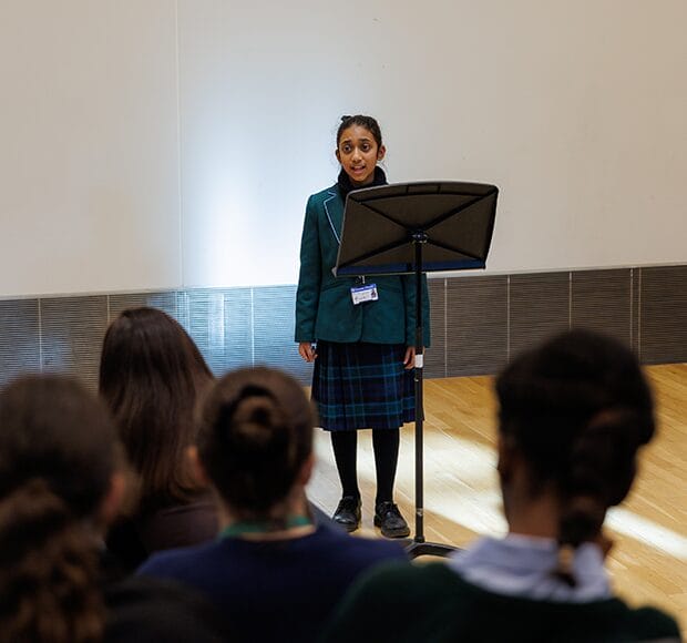 Every pupil read out their speech in front of the class, to help improve their confidence and public speaking abilities. The top two girls from each class were then sent into the finals where they performed in front of their whole year group as well as three judges.