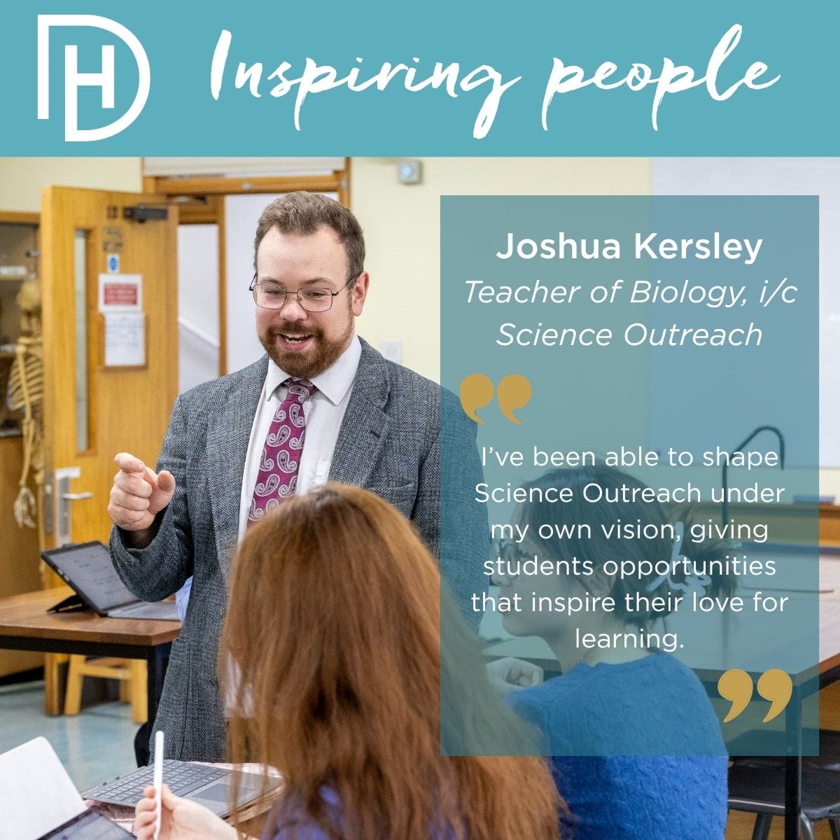 Mr Kersley: “DH has provided me with ample training courses, including the Middle Leaders’ programme with Bradfield College and Winchester College. They also gave me the opportunity to develop my own skills through my role as Teacher in Charge of Science Outreach.”
